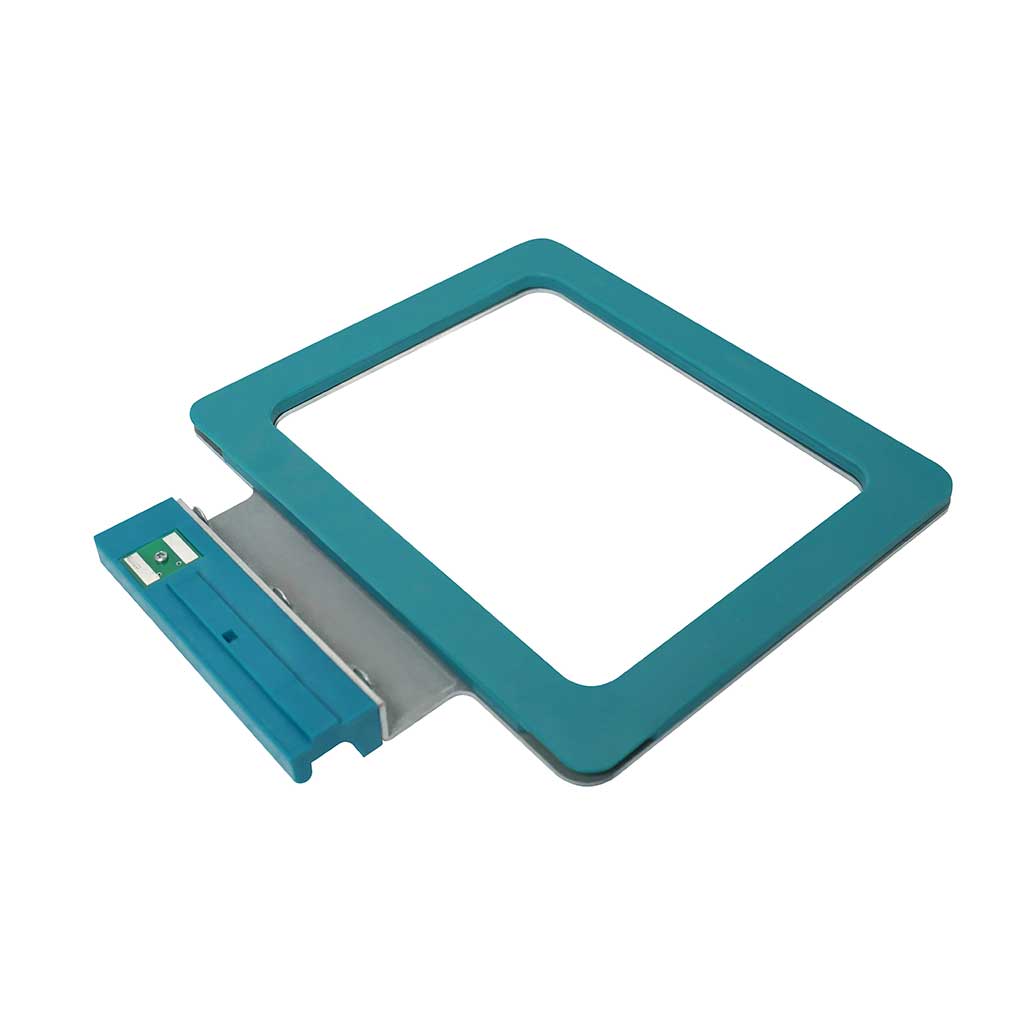 Snap Hoop Monster wird mit einem flachen magnetischen Oberteil und einem unteren Metallrahmen geliefert. Der untere Rahmen enthält einen Maschinenanschluss, der von Ihrer Stickmaschine erkannt wird. Lege einfach das Vlies und den Stoff über den unteren Rahmen und befestige den oberen Rahmen! Voilà!