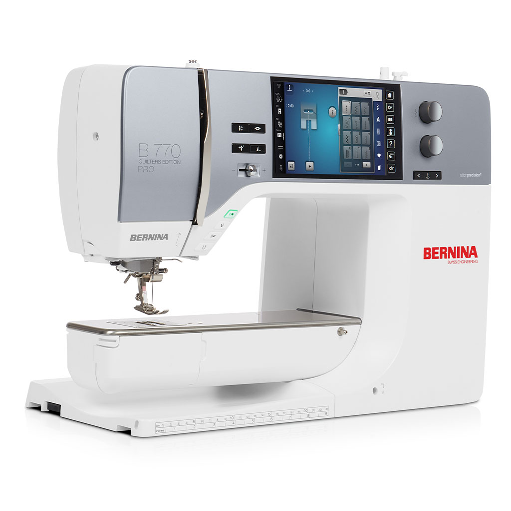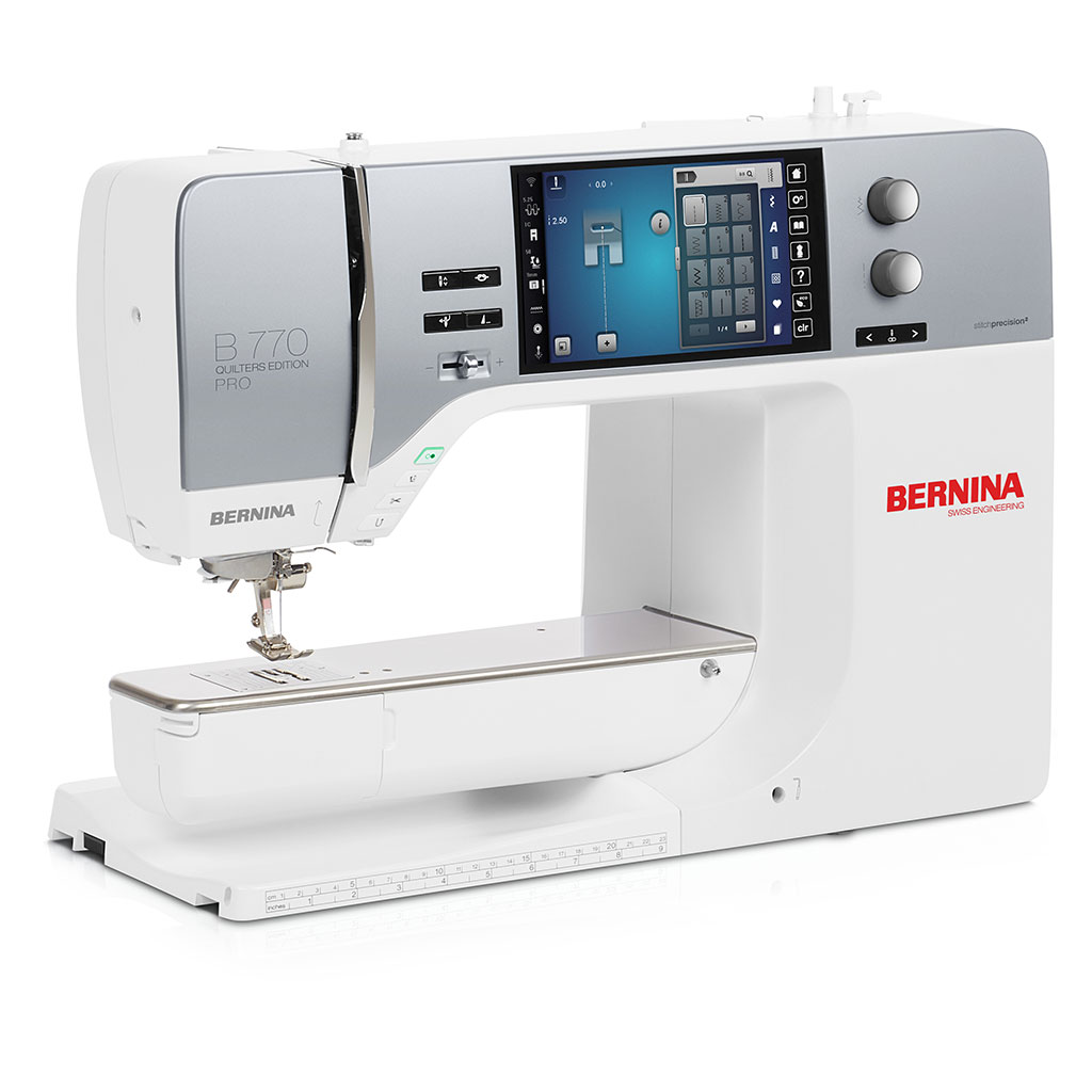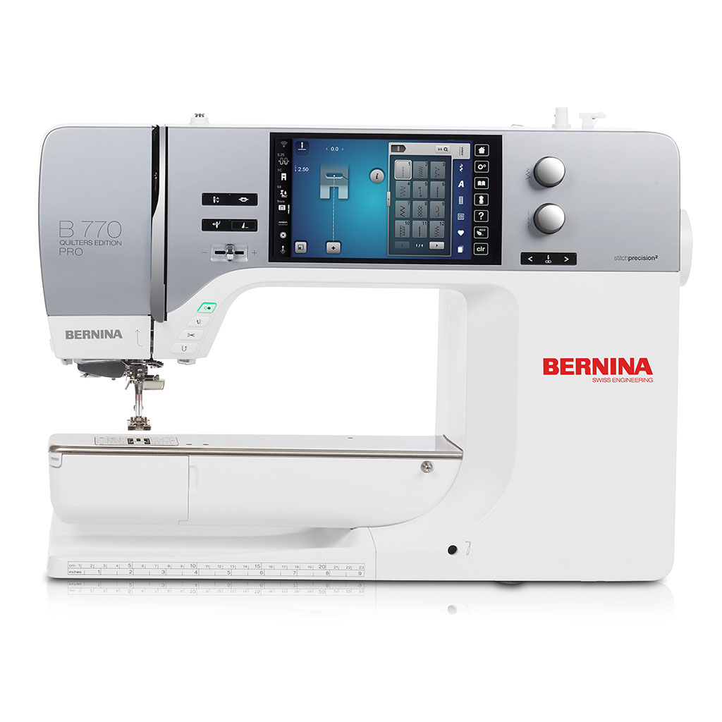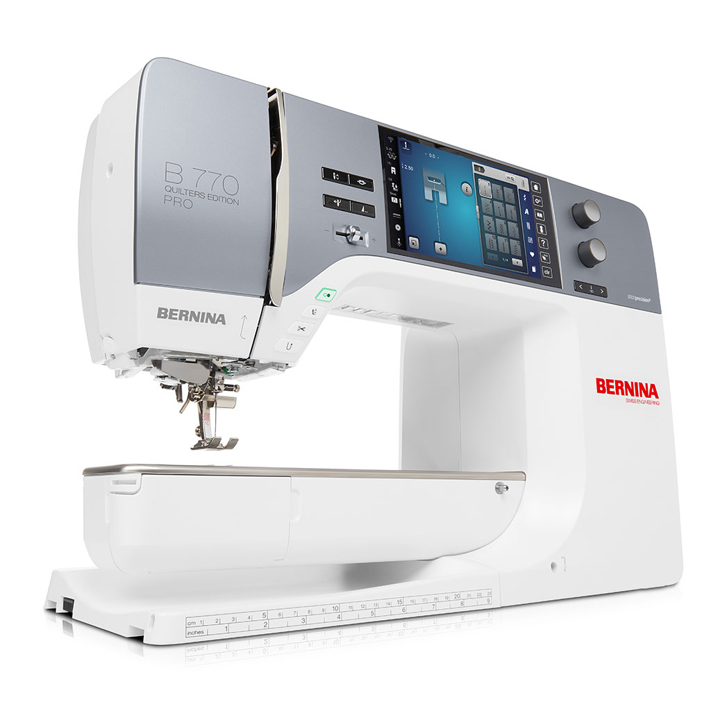 Die B 770 QE PRO bringt fortschrittliche Technologie auf ein ganz neues Niveau. Mit einer beeindruckenden Auswahl an Spezialstichen ist diese Maschine perfekt geeignet, um Quilts, Kleidungsstücke und Accessoires mit schönen Details zu versehen.