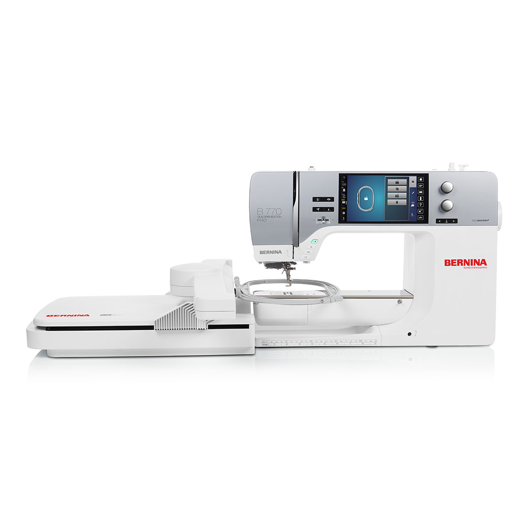 Die B 770 QE PRO bringt fortschrittliche Technologie auf ein ganz neues Niveau. Mit einer beeindruckenden Auswahl an Spezialstichen ist diese Maschine perfekt geeignet, um Quilts, Kleidungsstücke und Accessoires mit schönen Details zu versehen.